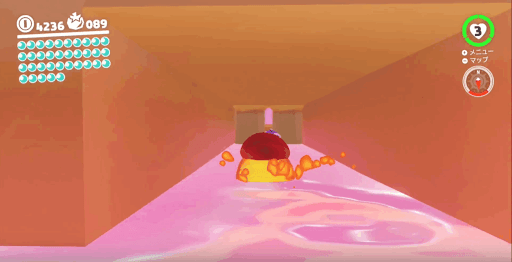 オデッセイ号の近くにあるマグマの上に、3枚のローカルコインが浮いている。バブルをキャプチャーした状態で取ることが可能。