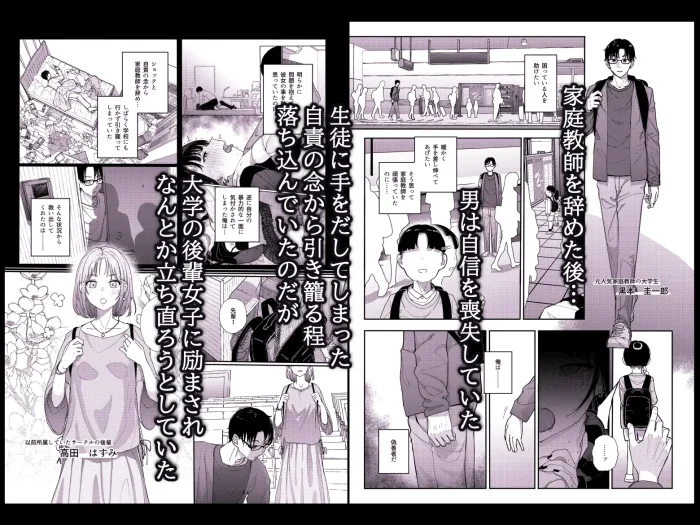 前作で生徒と関係を持ち、家庭教師を辞めてしまった真面目な男。罪悪感と自己嫌悪に沈みながら、友人たちの支えで少しずつ日常を取り戻そうとしていた。