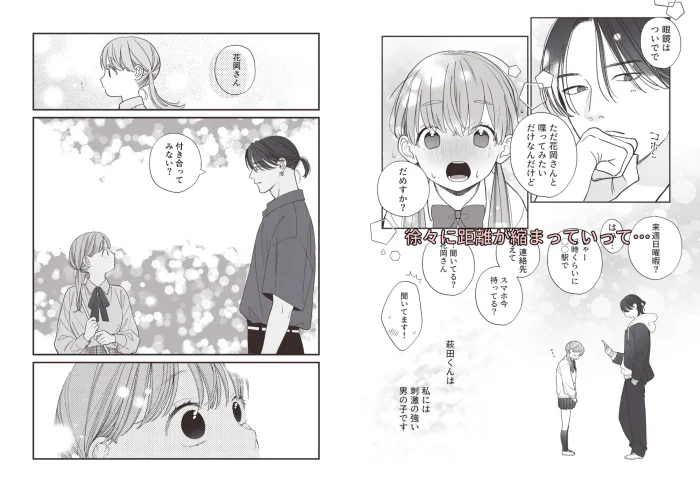 萩田くんの目線とか距離の取り方がリアルで、花岡さんが少しずつ安心していく過程に説得力がある。派手な演出じゃないのに、「あ、今縮まったな」って分かる瞬間が何度もあるんだよね……。