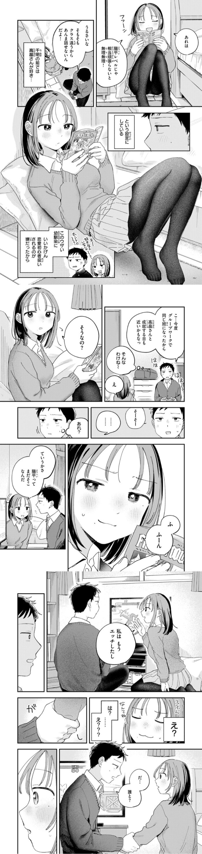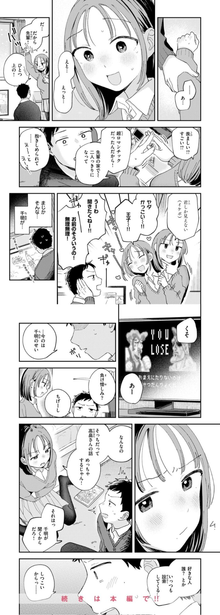 違う学校に通う千明と陽平。昔からの幼なじみで、軽口を叩き合う関係だけど、千明はどこか満たされない。陽平は他の女の子が好きだと言い、千明のことは安全圏扱い。