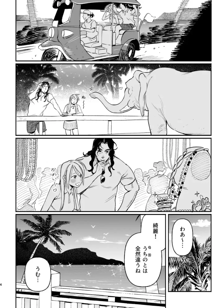 旅先で日焼けしたロマンと、ワンピース姿のヘレナ。