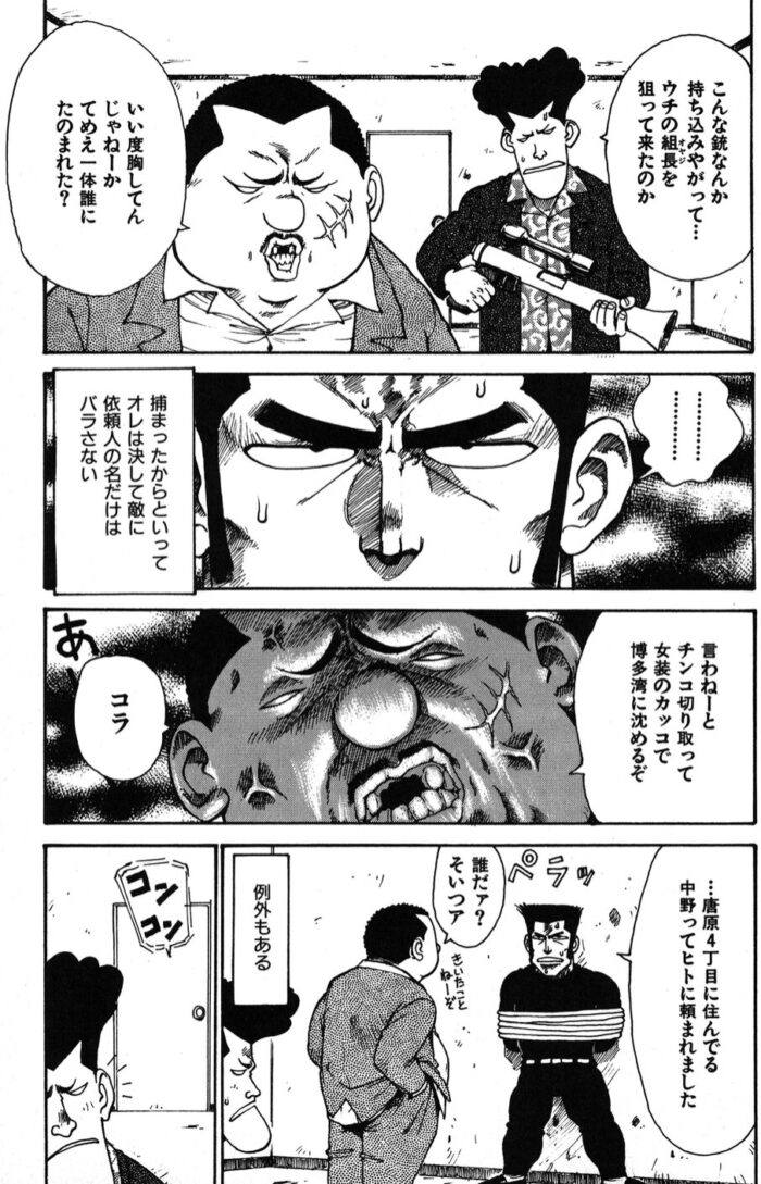 『天神くん』は、ハードボイルド風主人公をギャグで徹底的に転がすR18短編。