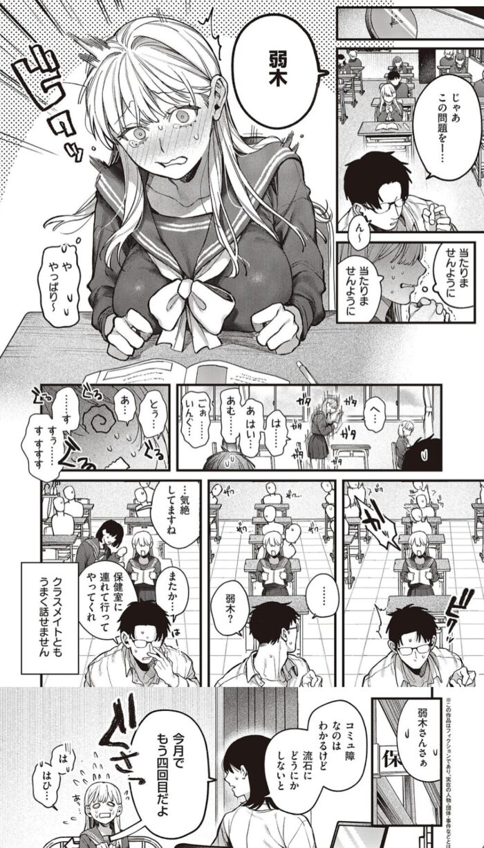 コミュ障で人と話すのが極端に苦手な女子が、なぜか男子テニス部のマネージャーになり、性処理係という役割を引き受けていく……そんな背徳感と不憫さが同居した作品が『弱木さんのおしごと』