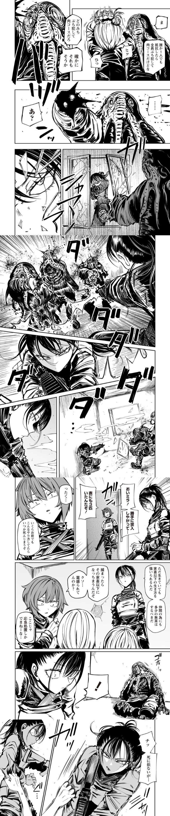 侵略者の意図や、兵士たちが追い詰められていく過程が短いページ数でしっかり描かれていて、「この世界、ヤバい」とすぐ理解できます。