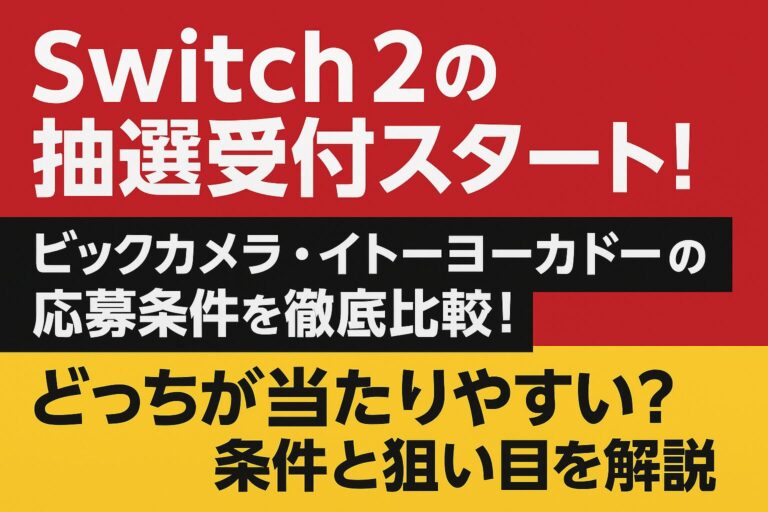 Switch 2の抽選はすでに始まっています。どちらの販売ルートも魅力がありますが、応募条件や自分の状況に応じて、戦略的に応募先を選ぶことがカギです。
